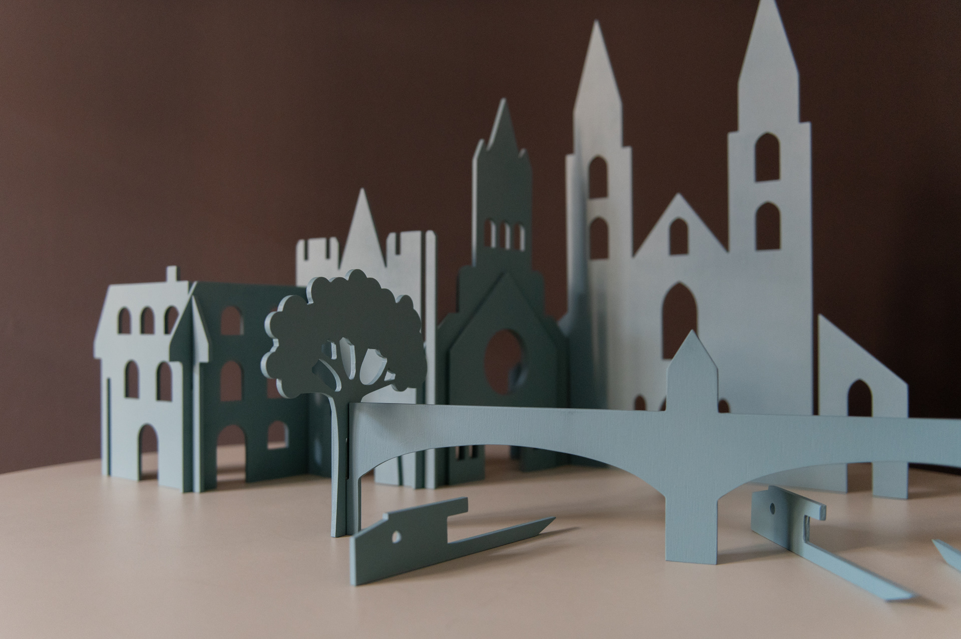 Stadt.Bühne is a spatial play object inspired by the architecture and atmosphere of Basel. The individual elements are based on characteristic buildings and striking landmarks of the city - each element reflects a piece of the urban identity. Designed as a flexible plug-in system, the elements can be freely combined and put together to create imaginative landscapes. This gives children in particular a simple, playful approach to the perception of the city.